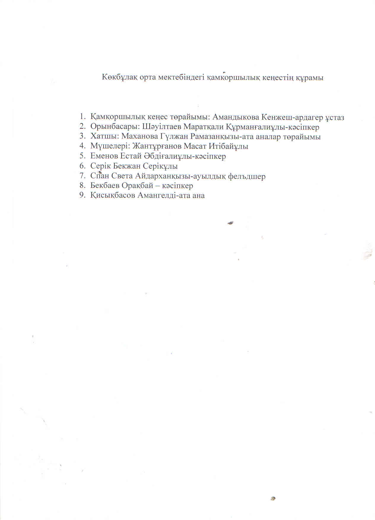 | 2 | Көкбұлақ орта мектебінде қамқоршылық кеңес отырыстарынан көріністер | DOCX |